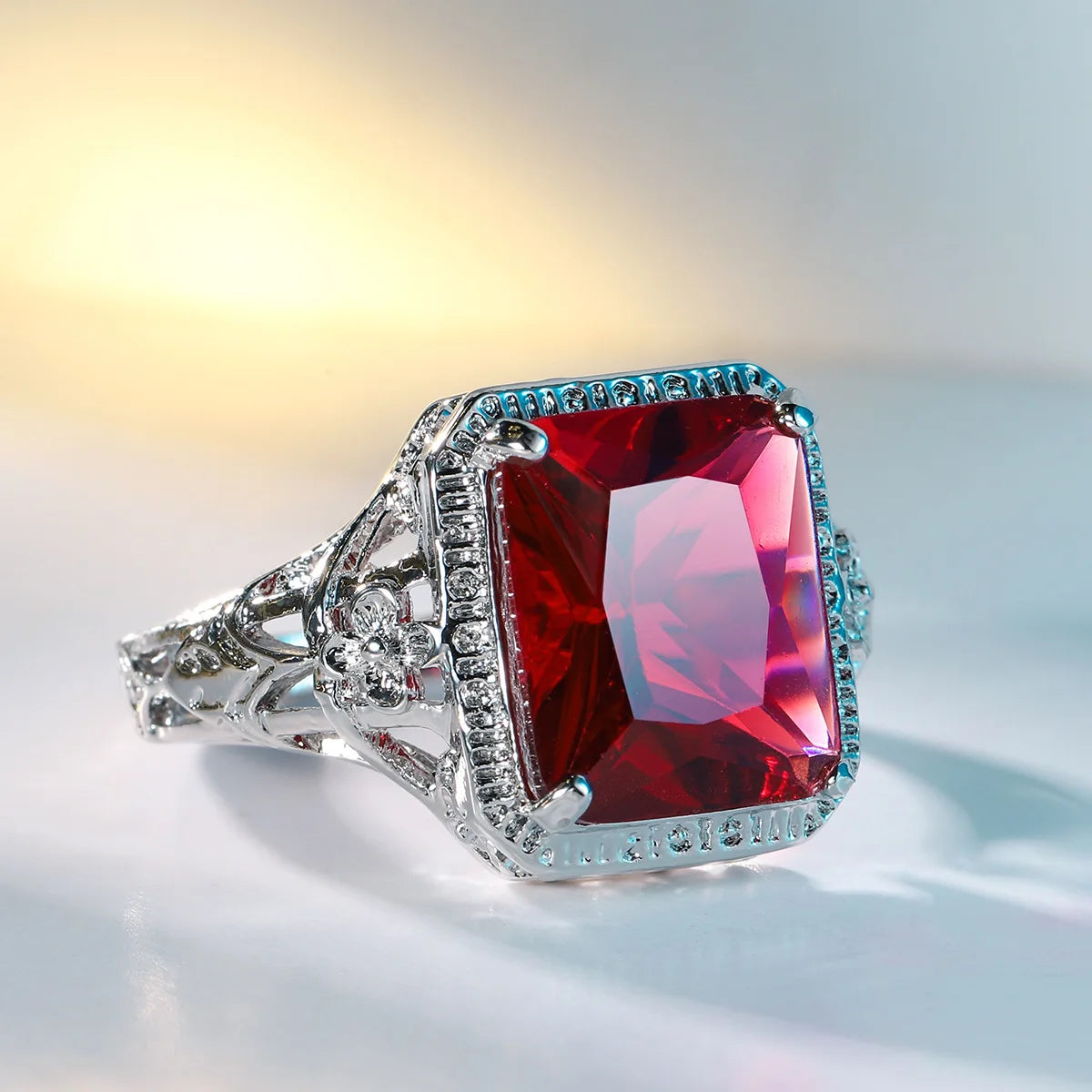 Hollow Engraved Flower Wedding Ring for Women